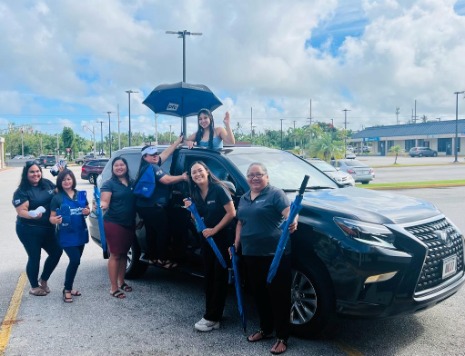 Shown in photo: Lily Somera, Michiko Greenstreet, (Frank Camacho (President/CEO - PFC Finance), Richard Arroyo (Agana Heights Mayor), Aleiah, Noreen.